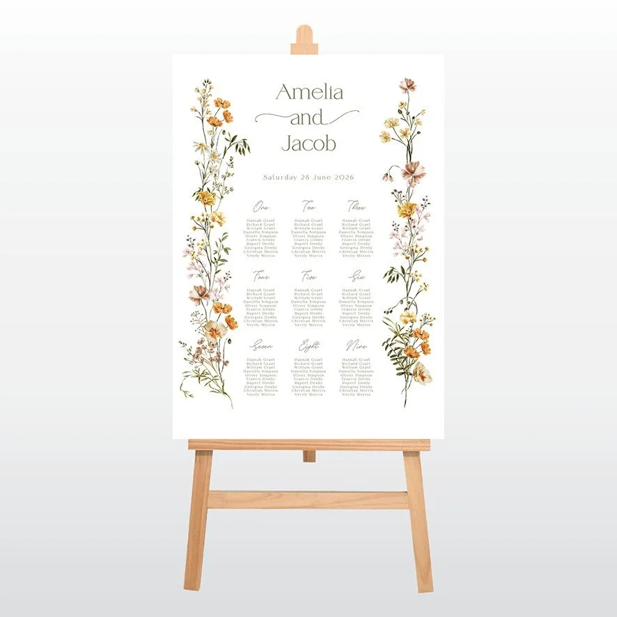 A1 (841x594mm) & A2 (594x420mm) sizes available, printed on 3mm foamex board, ready to display on your wedding easel. Please ask if larger or smaller sizes are required.