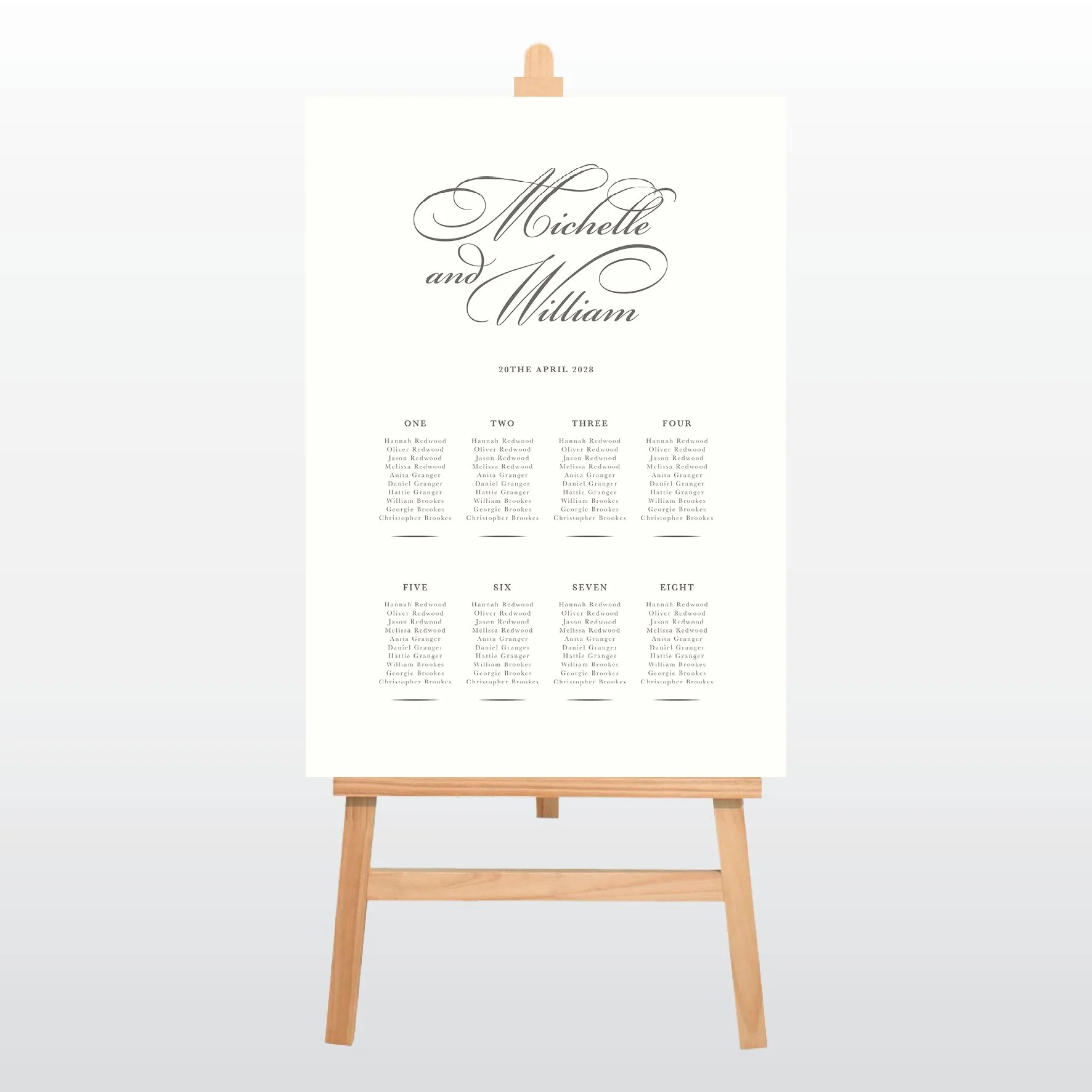 A1 (841x594mm) & A2 (594x420mm) sizes available, printed on 3mm foamex board, ready to display on your wedding easel. Please ask if larger or smaller sizes are required.